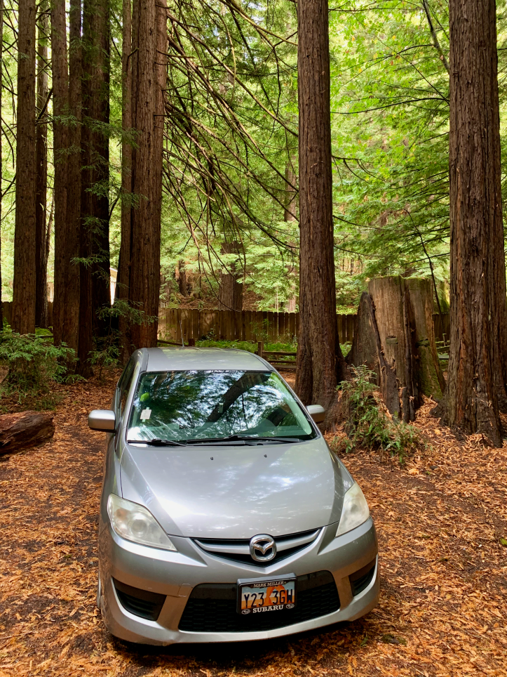 After a couple fires it was getting close to the end of summer and time to start thinking about heading home for the winter and figure out how to put my life back together and hopefully keep my house. I convinced myself that I needed to get a job and be a boring person again. But I wanted to take a couple days and explore the redwoods cause I always wanted to ride a motorcycle there and I was really missing my bike. So I did a weekend in the redwoods with my sweet micro van. I ended up taking pictures of the car like I would a bike cause I’m soooo hilarious. Here’s some of that.