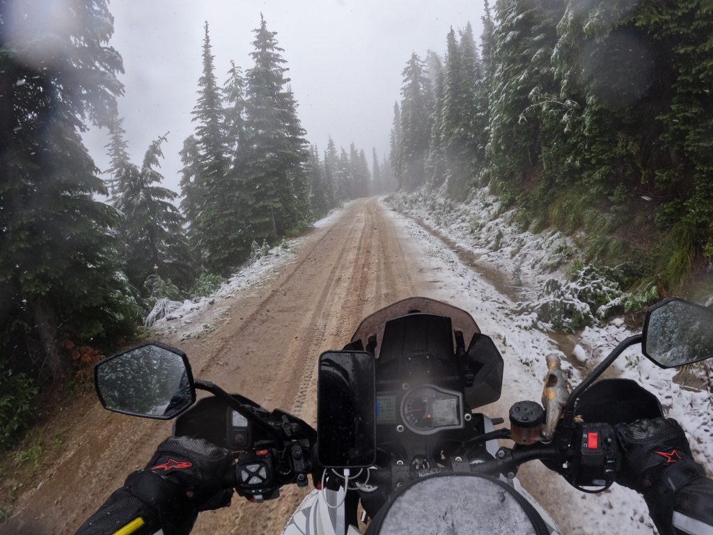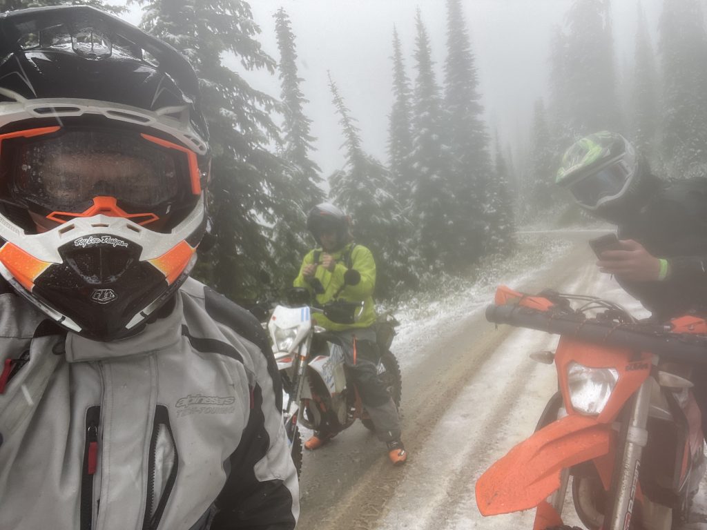 Yeah……we rode in the snow……in June. It was so fun. We all really appreciated the new pavilion that North Haven Campground built this spring!