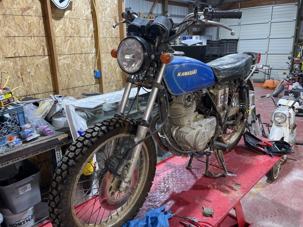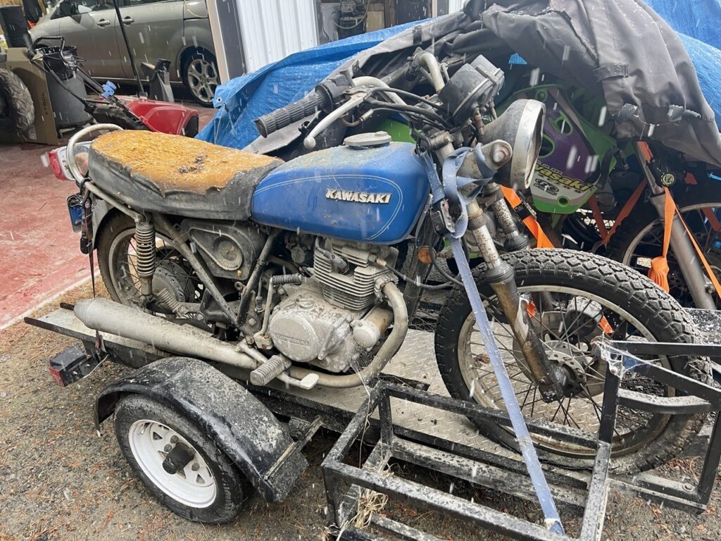 I ended up in California working for my cousin Jason, who knows literally everyone. One of the people he knows happened to have a few little gems for sale. One of which was destined to become my most favorite motorcycle that I have owned to date. A 1978 Kawasaki KZ200. In VERY rough condition. I bought two other bikes from the lady but this one is the star of the story today. Oddly though, at the time I had no idea what I was going to do with it. Not a clue. And it actually spent the next 2 years under a tarp, permanently strapped to a trailer.