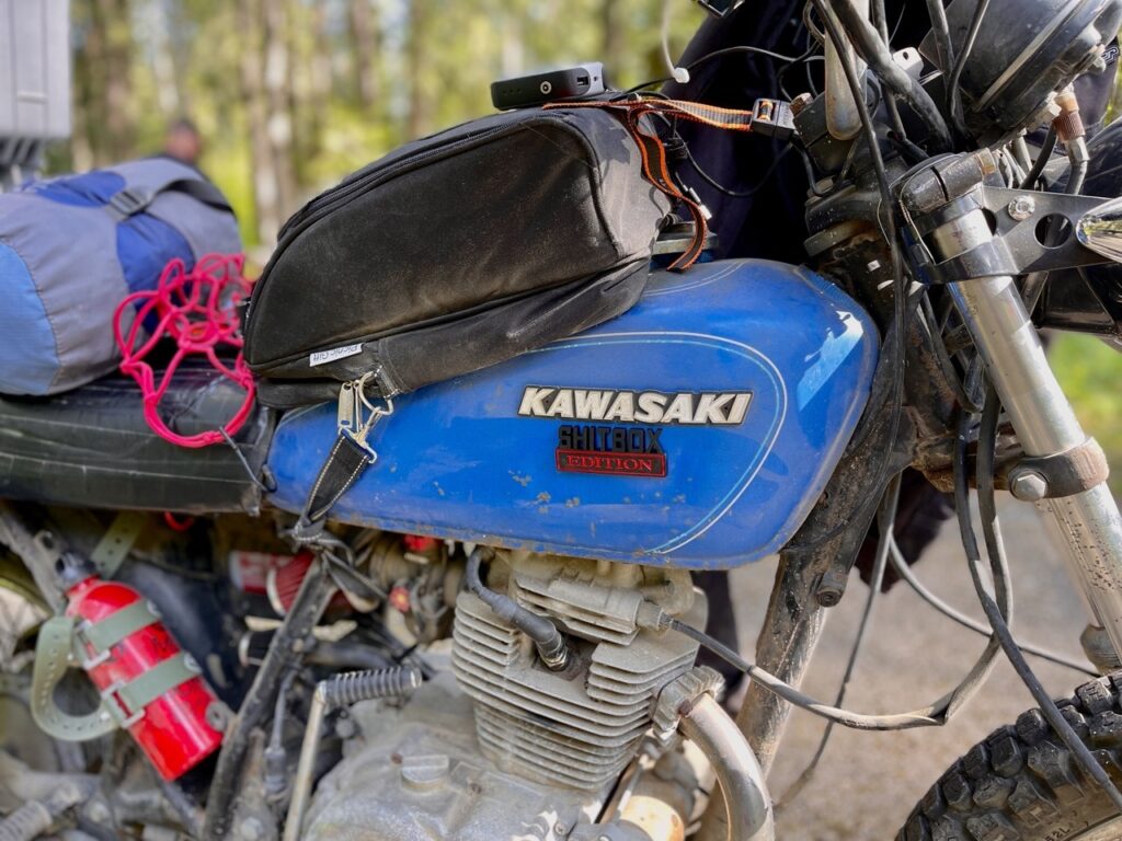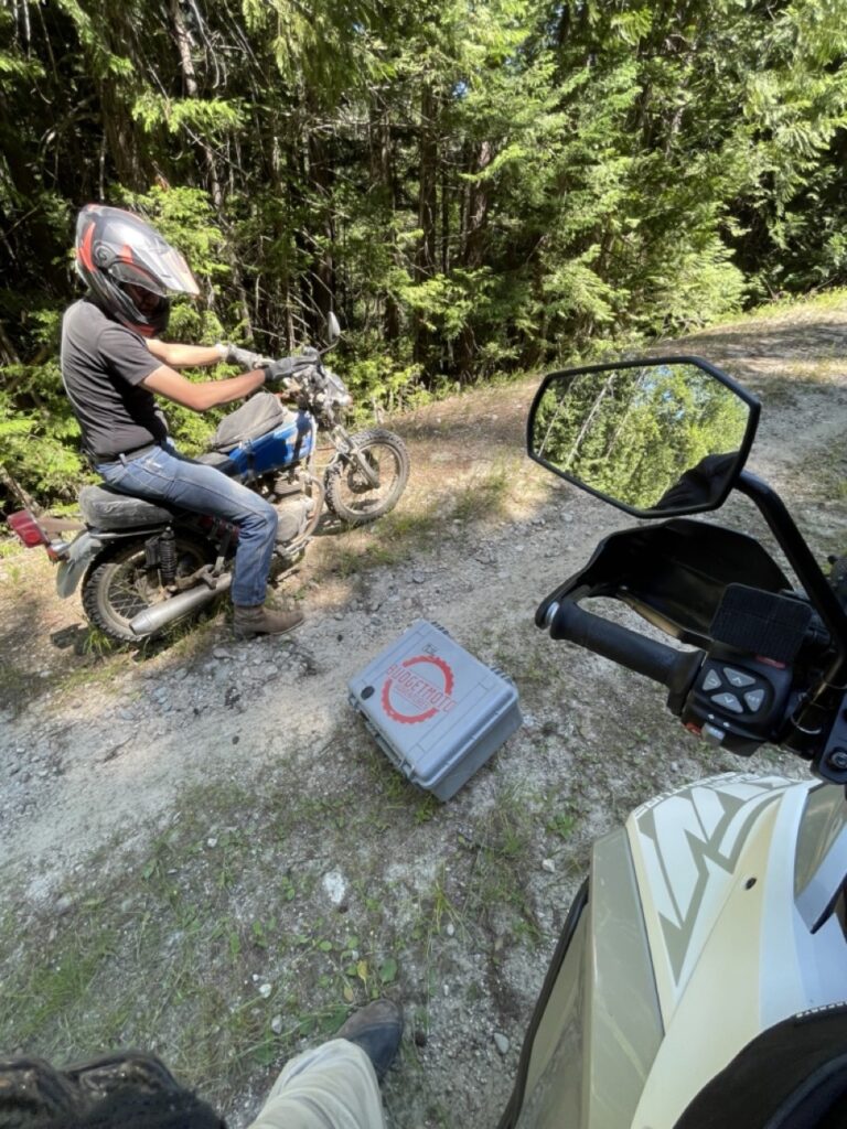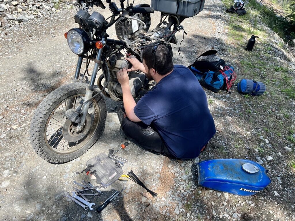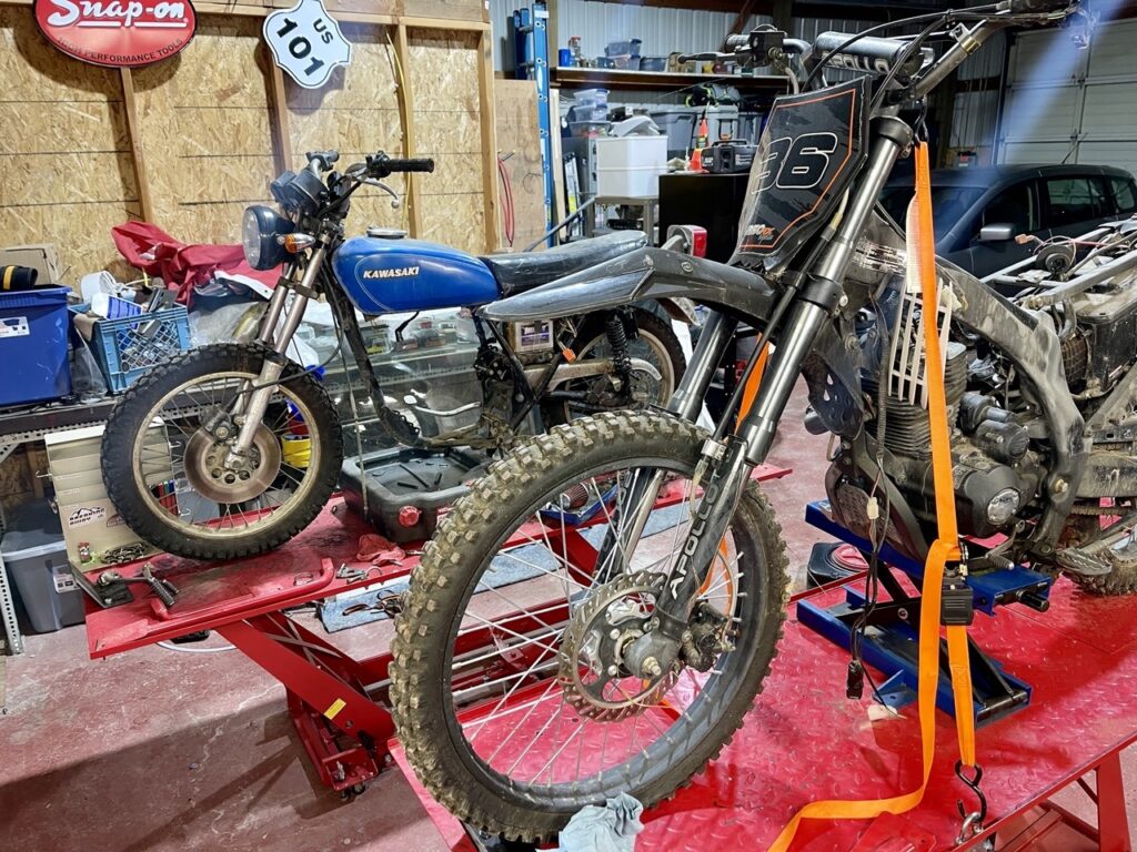 I was prepared to keep Bill running all summer and then let him retire to a comfy spot hanging in the rafters in the shop that winter. I let a my friend, Brandon, borrow the little blue bike for the remainder of the summer so we could ride together and he could save on fuel. I told Brandon to keep in mind that the bike was older than me and incapable of speeds over 55. Brandon didn’t care, he was just happy to be on two wheels. Bill even took Brandon on a couple adventures of his own. AND Bill The Pony was the on the original scouting trip for the 2 The Border poker run….completing the entire off road poker run course just like all the other bikes at the rally!