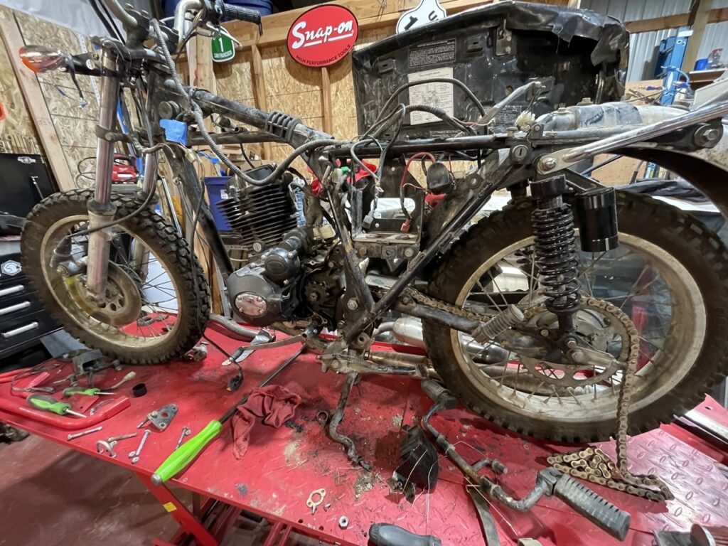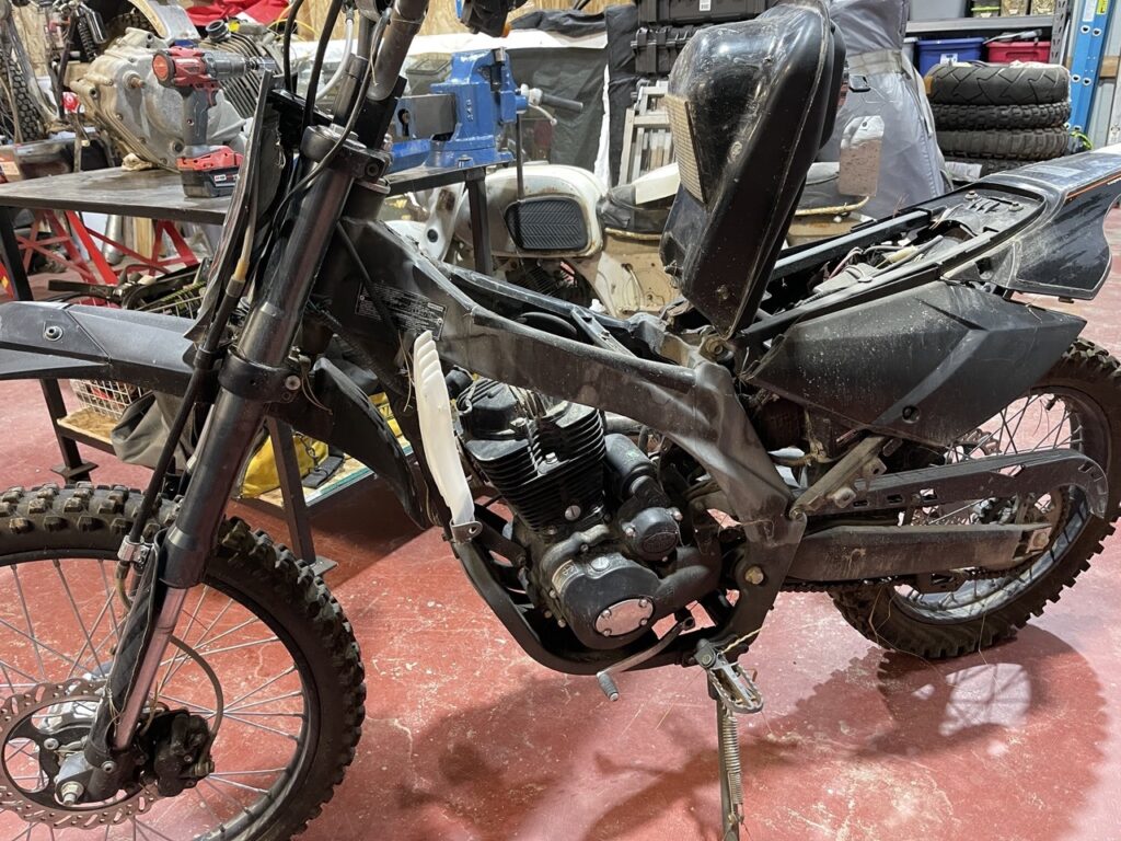 It is not a stock engine. It’s a Chinese engine from a cheap Chinese dirt bike. But….there it sat……a perfectly functional 250cc engine that looked like a very close match. I could not leave poor old Bill in that forsaken place. He needed my help.