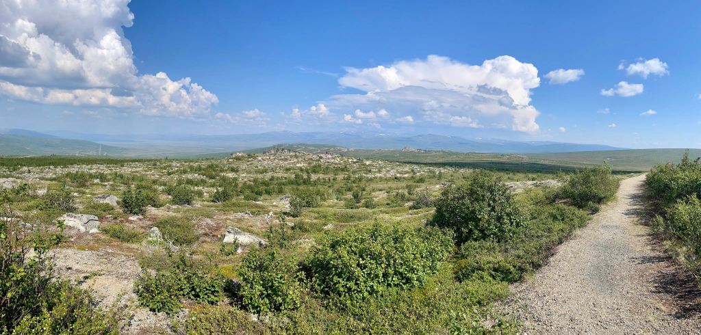 It was nice and sunny all day and the road was not too bad. I came across a small fire burning right of the side of the road and, of course, it was right at the arctic circle visitor sign and firefighters had it blocked off so I couldn’t get my picture at the sign! Hopefully it’ll be open when I head back down.