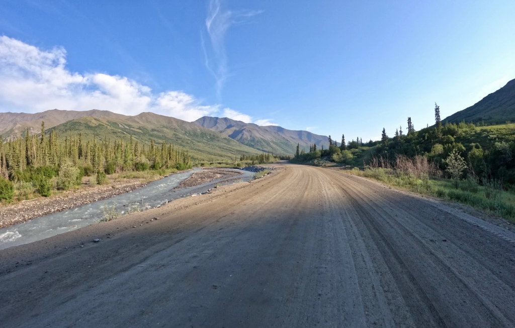 There were a couple bikes ahead of me for most of the day and it was nice to not be alone. But, right as we got to Coldfoot camp one of them crashed as he turned off the road. And then his buddy pulled over to help and as he climbed off the bike it fell over off the side of the road. None of it was terrible or caused any real damage other than to egos but my goodness was it funny to watch. I ran over to help and then we all made our way in to camp….slowly. I got set up and then found out that there was a visitors center across the highway so I went over to check it out, with low expectations considering the state of the buildings at Coldfoot camp. Well man was I wrong! It was by far the nicest visitors center I’ve seen. It has a small museum and a theater. I spent the whole evening there being a nerd. I watched two documentaries and then came back after dinner for a presentation about the history of the town of Coldfoot…..spoiler alert, it’s here cause gold.
