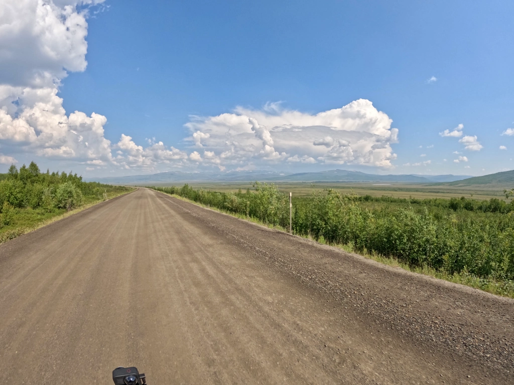 And then it started absolutely pouring. So I went to bed. Once it stopped raining the sun came out, at midnight, and it was really hot in my tent. But I slept anyway. Now I’m just worried about the road being all muddy tomorrow.