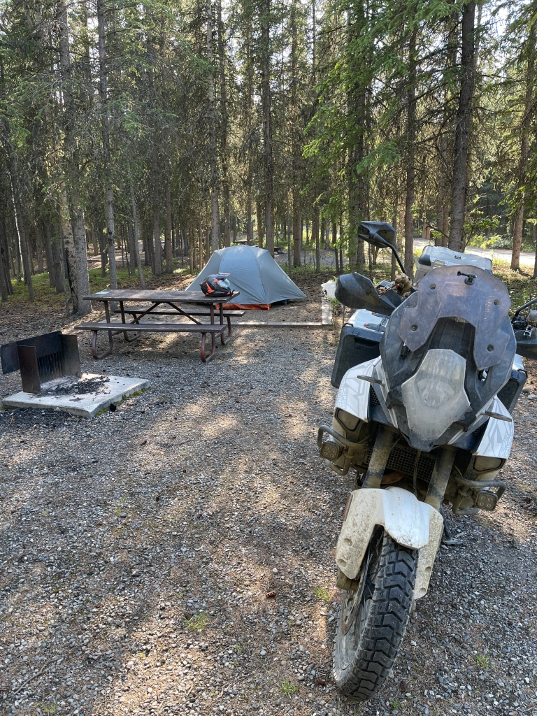 So I started out the day thinking I would stay in Fairbanks again for one night and then head south to Denali…..and then I got to Fairbanks. I hate that place. It’s just a city but for some reason every time I’ve been there now I get all antsy and have to get out as soon as possible. I think it’s the shock of experiencing the freedom of the wilderness and then suddenly being thrown into a hot and stinky busy city. So I got back on and rode another 122 miles to Denali. I’m at a campground and I’ll be here for 2 nights. I need a day off after the last 4 days.