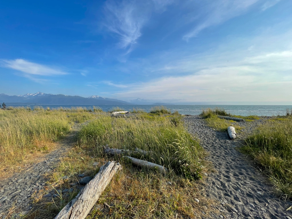 I went all the way down to the end of the Homer spit and took my picture. I don’t know why it’s called that…..I’m sure there’s some nautical definition for a spit. I sat down on the beach for a minute and just thought and looked. I realized that this is the turn around point of the trip. I’ve accomplished all the things I planned, I went all the way to the top of Alaska and now I’m down at the bottom. It’s technically all going home from here. There’s still a long way to go though.