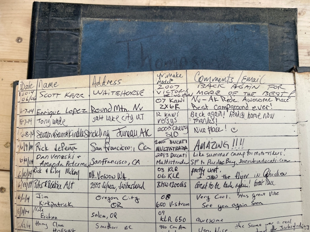 I’m at Thompsons Eagle Claw campground for the night. It’s a campground just for motorcycles and I’ve stayed here 3 times before now. I found the guest book a few minutes ago and thought I’d try to find where Enrique and I signed back in 2014. I literally opened it right to the page we signed. Can’t believe it’s been 8 years.