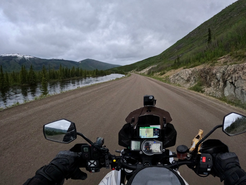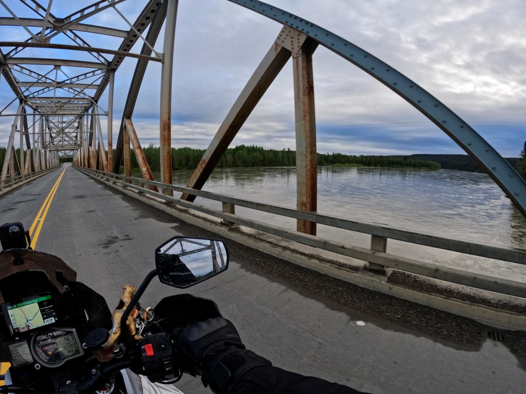 And here’s todays video. There’s a place called Teslin that has a loooong metal grate bridge. You can see it for a few seconds in the video. Those bridges are not fun to cross. The metal grate grabs your tires and pulls you back and forth sideways and it’s really unsettling. For whatever reason the Teslin bridge was particularly grabby and I’m pretty sure I pee’d a little.
