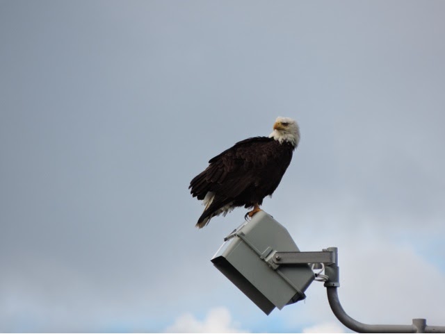 BUT! While we waited a bald eagle landed on a lamp post near us and just sat there for almost an hour and posed for me…..so I took a ton of pictures.