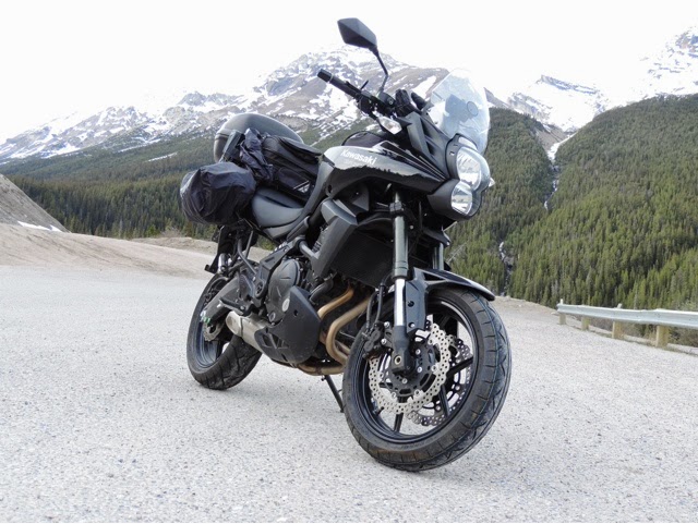 We made it to lake Louise and were soaking wet but had just outrun the storm so we stopped and had some food and hot chocolate. I really wanted a picture of the lake but I really wanted to not ride in that storm more so we kept moving……maybe next time.