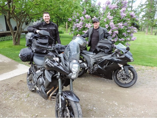 Left my dads house today and crossed in to canada. The border control place was very laid back. They forgot to ask me all the questions and just sent me right on through behind Enrique. Then we got to spend a good while trying to figure out how fast we were allowed to go……kilometers are hard. I would like to say now that Canada might be able to accomplish more if they raised the speed limits. We were on roads today that would be 80mph back home that were 70-100 kph…….that’s a max of 62mph…….it’s was agonizing at times.