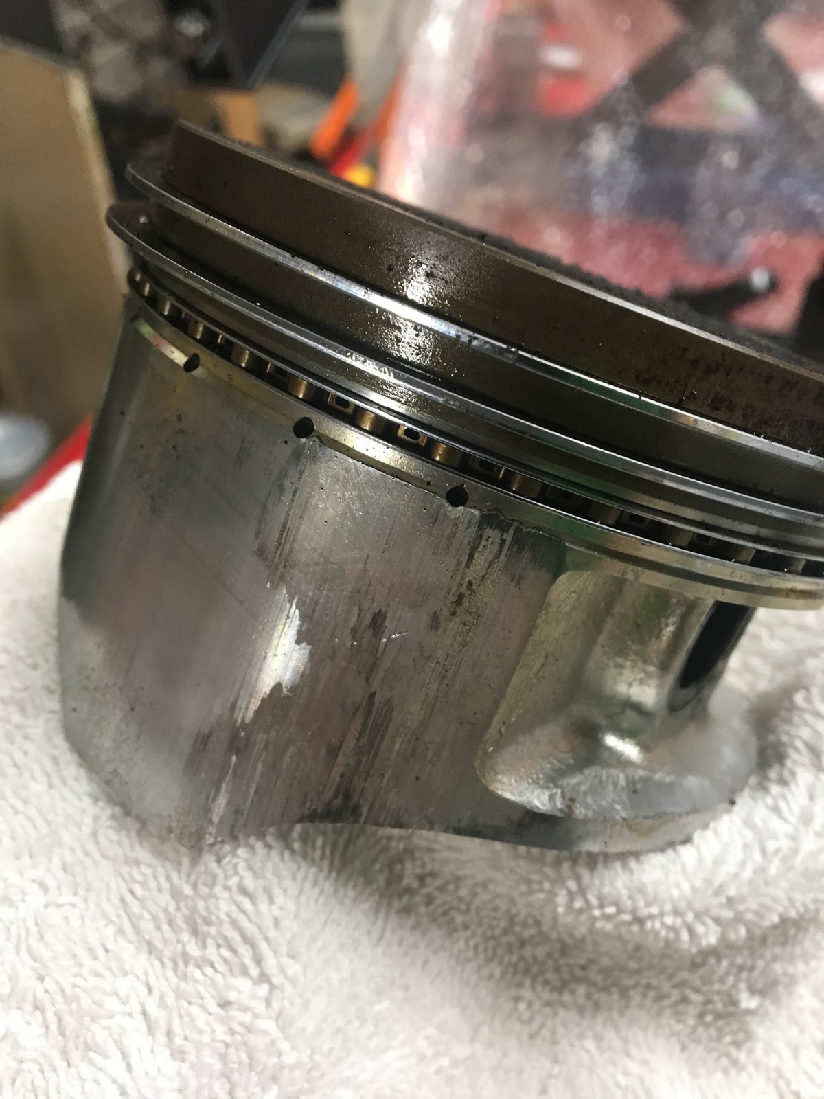 To fix the out of round…ness of the cylinder requires boring it out which requires a bigger piston. The aftermarket piston is also much lighter than stock so it has the added benefit of causing less vibration. I have to send the cylinder out to get machined and I’m also getting the head refurbished so it will be while until this part is done. I am considering completely disassembling the engine and replacing every bearing……still haven’t decided.