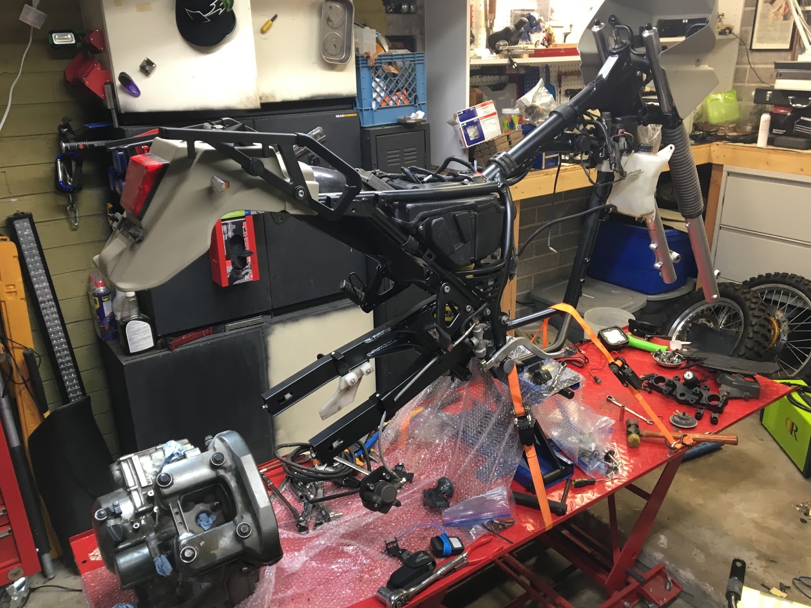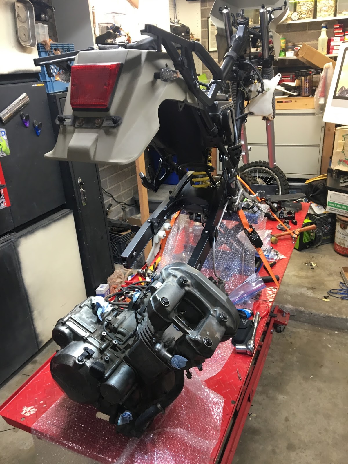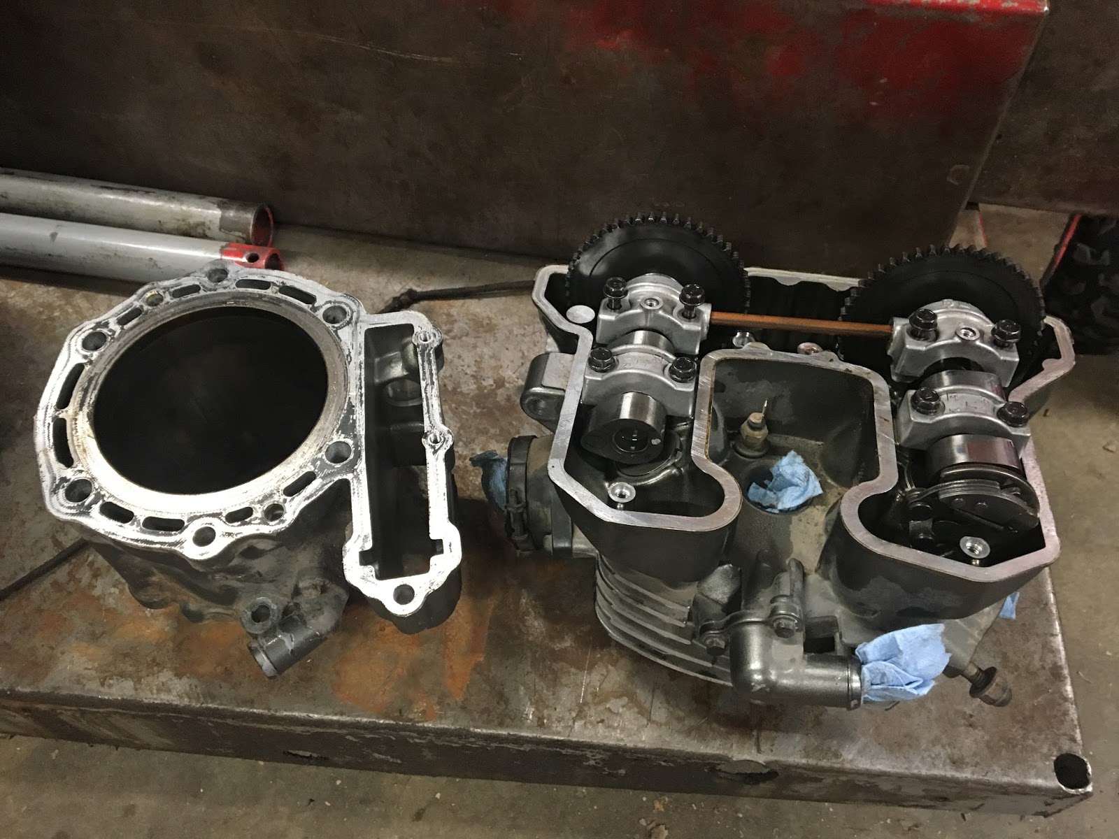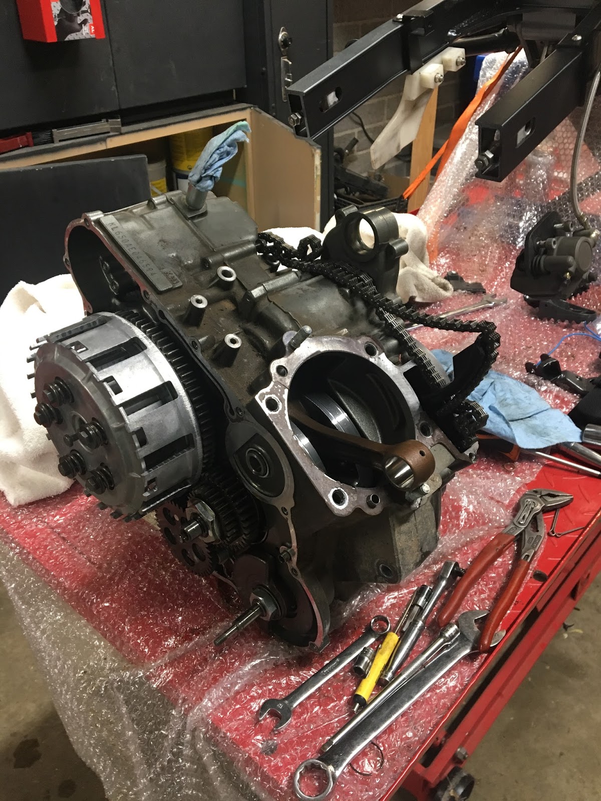 This bad boy is getting a big bore kit! It’s going from 650cc to 692cc. The size increase isn’t really to gain power its more to address a common issue with these bikes….they burn oil because of inferior piston rings and out of round cylinders.