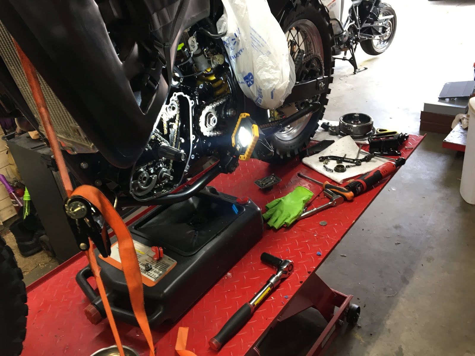 Well that test ride lasted about 4 minutes. The engine was shaking like crazy. ran just fine and didnt make any weird noises….it just shook. So back on the lift table to address a very likely incorrectly timed balancer system.