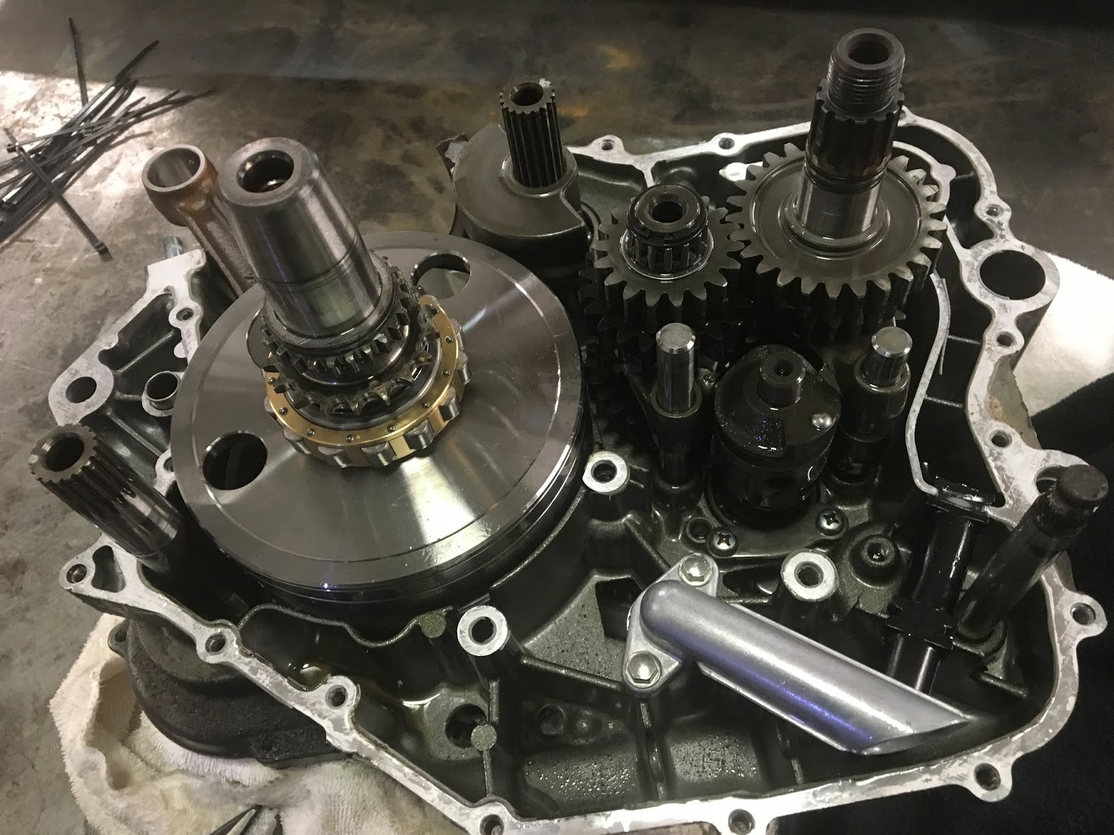 This past week I was able to spend some time on the KLR project. I got the engine split apart so I could fix the stripped drainplug. The drainplug hole has to be filled with a weld and then drilled back out and tapped to accept the drainplug again. I havent gotten the case half to a welder yet….hopefully next week.