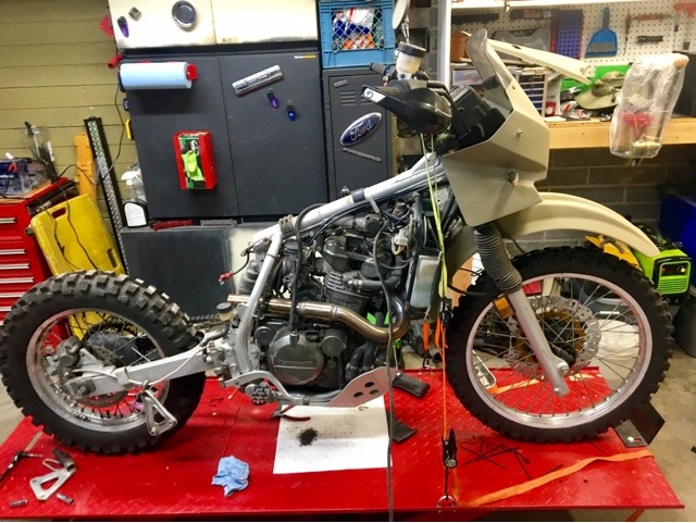 It was hideous! I took all the panels off and painted them a nice desert tan color and cleaned the bike up a bit and was content for a year.